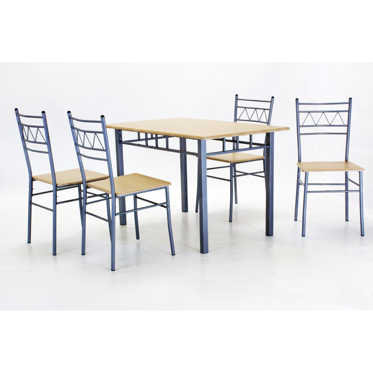 Oslo Rectangle 1200W x 750D . 4 Chairs . Silver with Beech Finish, W420 x D500 x H925