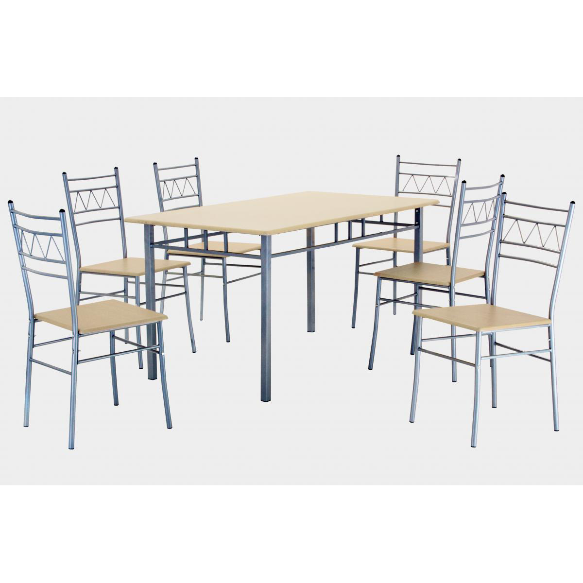 Oslo Large 1450W x 820D . 6 Chairs . Silver with Beech Finish, W420 x D500 x H925