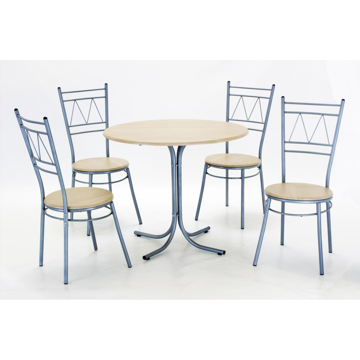 Oslo Round 900W Round . 4 Chairs . Silver with Beech Finish, W470 x D370 x H950