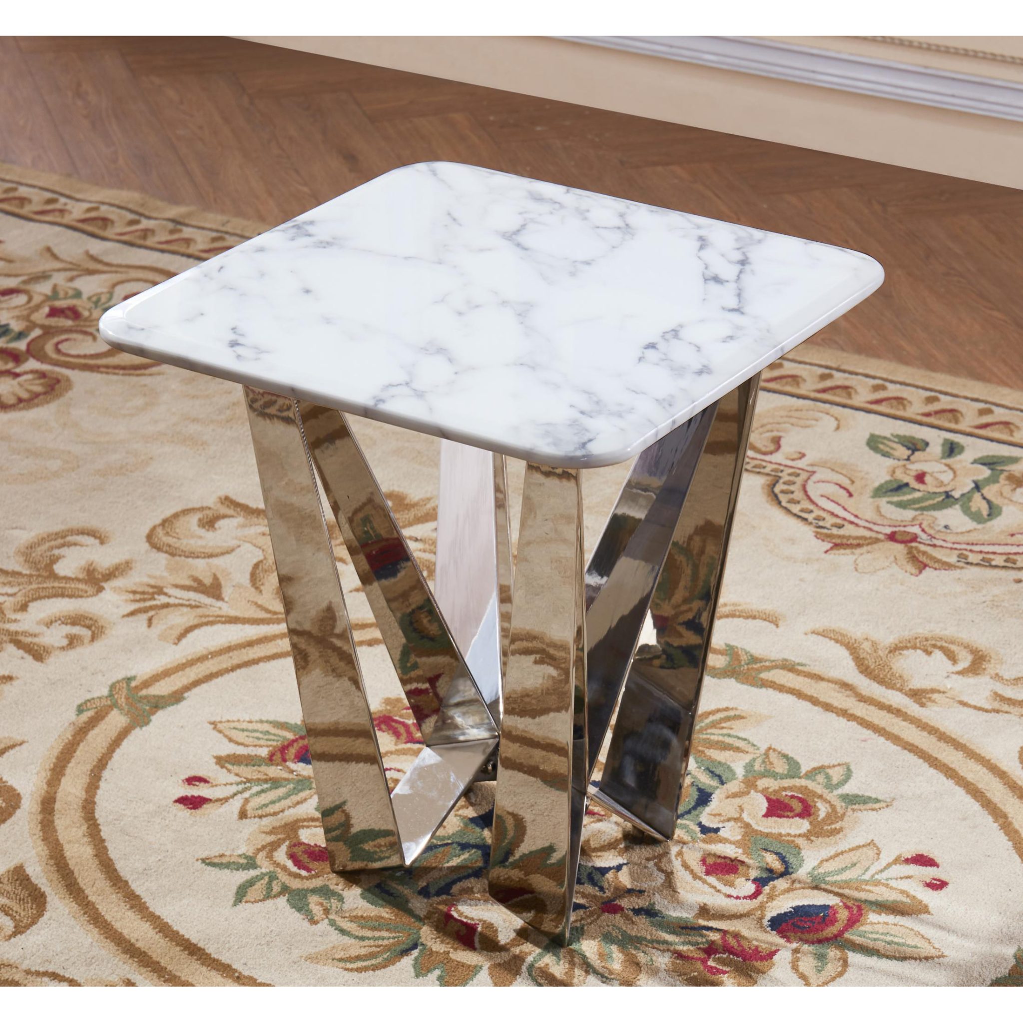 Natural Stone with Marble Effect and Lacquer Finish, Grey and Stainless Steel, Sardinia Lamp Table