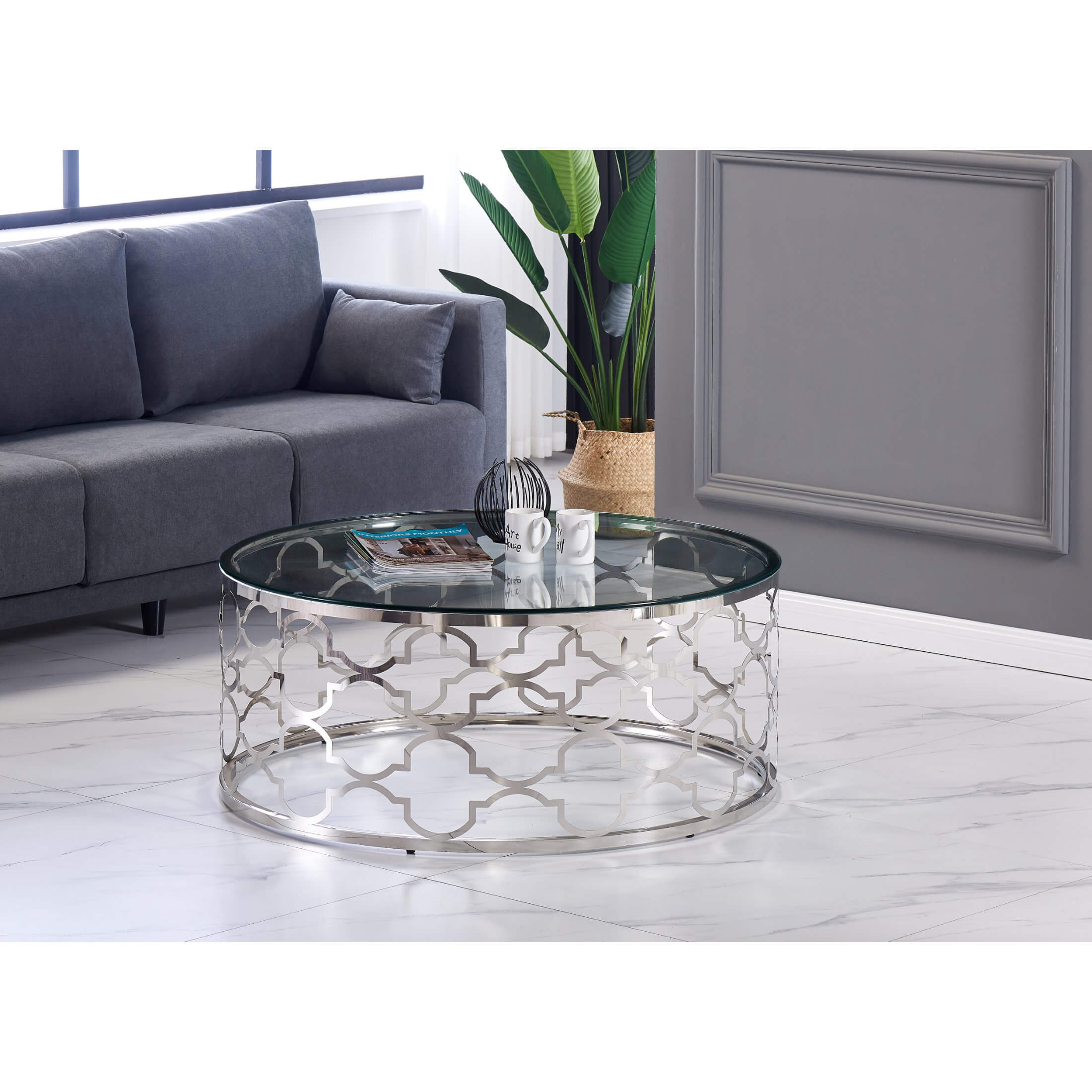 Yukon Round Coffee Table Clear Glass & Silver Frame